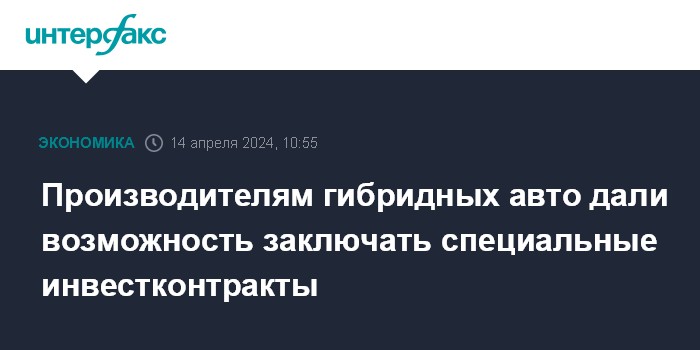 Производителям гибридных авто дали возможность заключать специальные инвестконтракты