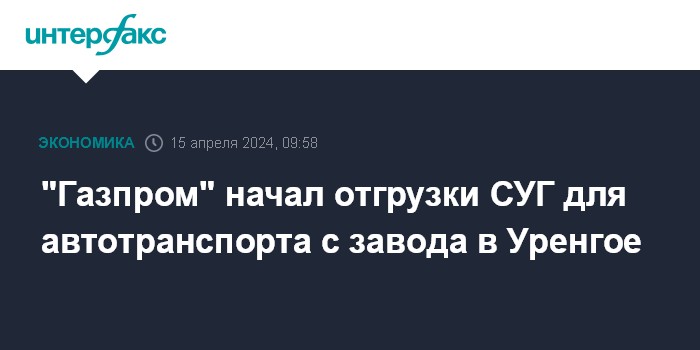 "Газпром" начал отгрузки СУГ для автотранспорта с завода в Уренгое