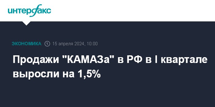 Москва. 15 апреля. INTERFAX.RU - Продажи автомобилей "КАМАЗ" на российском рынке в I квартале 2024 года увеличились на 1,5% по сравнению с аналогичным периодом прошлого года, до 8,488 тыс. единиц техники, сообщил производитель.
