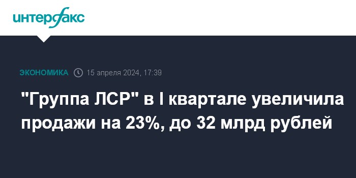 Москва. 15 апреля. INTERFAX.RU - ПАО "Группа ЛСР" в январе-марте 2024 года увеличило продажи на 23,1% по сравнению с аналогичным периодом прошлого года - до 32 млрд рублей, сообщает пресс-служба компании.