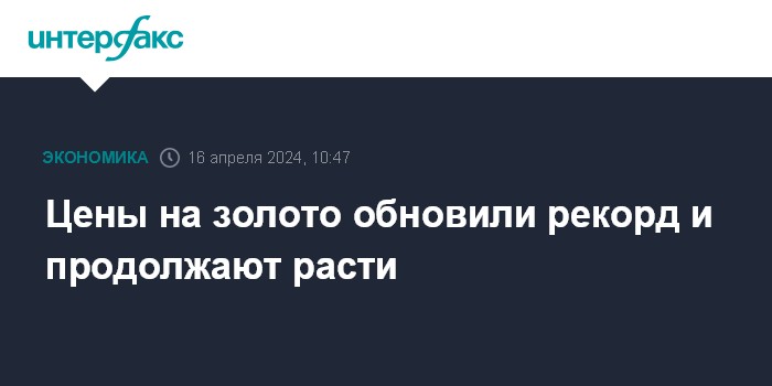 Москва. 16 апреля. INTERFAX.RU - Цены на золото обновили рекорд в понедельник и продолжают повышаться на фоне усиления геополитической напряженности на Ближнем Востоке и ожидания ответных действий Израиля после атак со стороны Ирана, сообщает MarketWatch.