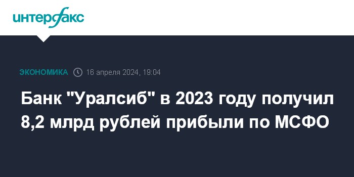Банк "Уралсиб" в 2023 году получил 8,2 млрд рублей прибыли по МСФО