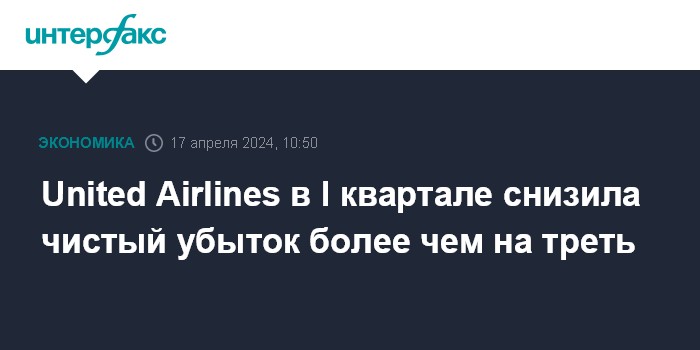 Москва. 17 апреля. INTERFAX.RU - Американская холдинговая компания United Airlines Holdings, являющаяся материнской компанией United Airlines, в первом квартале сократила чистый убыток более чем на треть и увеличила выручку почти на 10%, при этом скорректированный показатель и доходы оказались лучше ожиданий рынка.