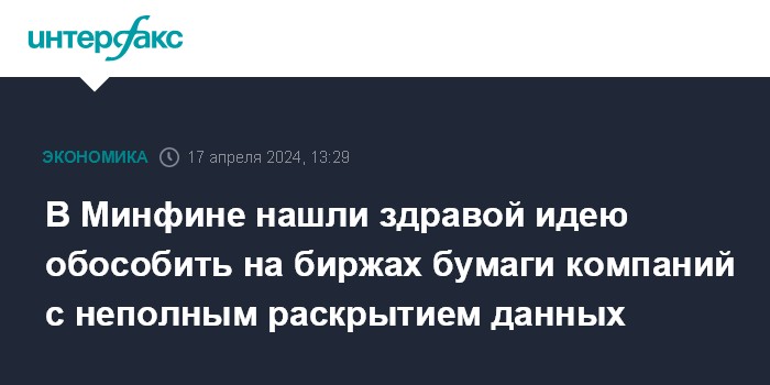 В Минфине нашли здравой идею обособить на биржах бумаги компаний с неполным раскрытием данных