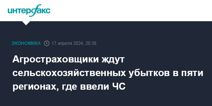 Москва. 17 апреля. INTERFAX.RU - Пять регионов, которые ввели режим ЧС, могут столкнуться с убытками из-за гибели озимых культур, сообщил Национальный союз агростраховщиков (НСА).