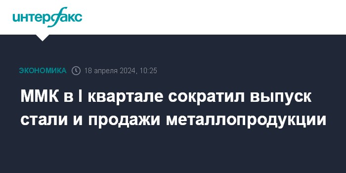 Москва. 18 апреля. INTERFAX.RU - В I квартале 2024 года "Магнитогорский металлургический комбинат" сократил производство стали на 4,7% по сравнению с четвертым кварталом 2023 года, до 2,97 млн тонн, в связи с сезонными факторами, сообщил ММК.