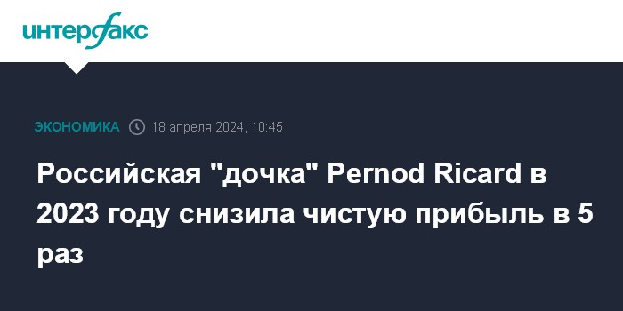 Российская "дочка" Pernod Ricard в 2023 году снизила чистую прибыль в 5 раз