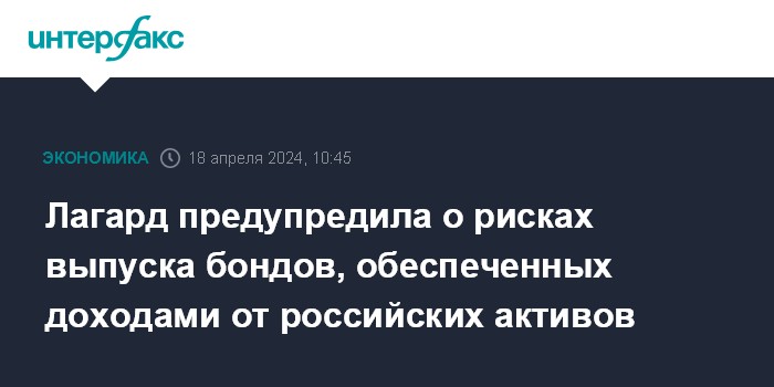 Лагард предупредила о рисках выпуска бондов, обеспеченных доходами от российских активов