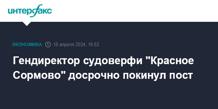 Москва. 18 апреля. INTERFAX.RU - Совет директоров ПАО "Завод "Красное Сормово" (Нижний Новгород, входит в "Объединенную судостроительную корпорацию", ОСК) на заседании в среду принял решение с досрочно прекратить полномочия генерального директора Михаила Першина, говорится в сообщении верфи.