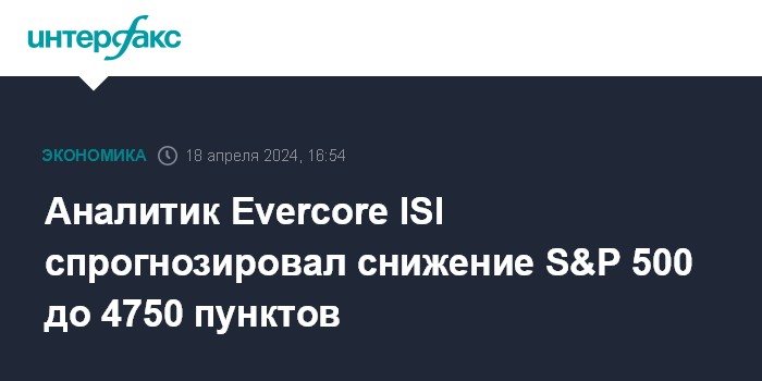 Аналитик Evercore ISI спрогнозировал снижение S&P 500 до 4750 пунктов