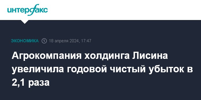 Агрокомпания холдинга Лисина увеличила годовой чистый убыток в 2,1 раза