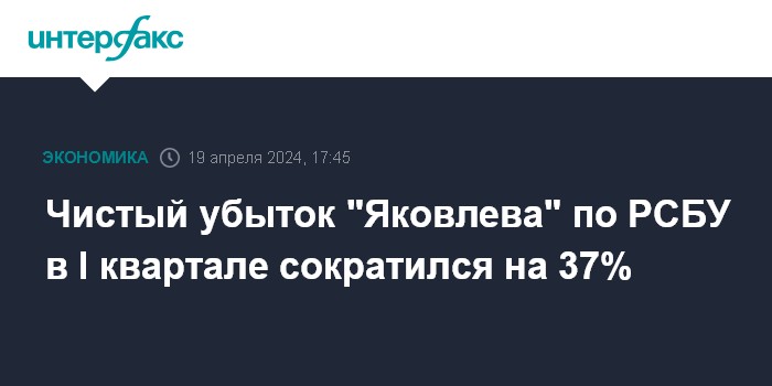 Чистый убыток "Яковлева" по РСБУ в I квартале сократился на 37%