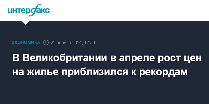 В Великобритании в апреле рост цен на жилье приблизился к рекордам