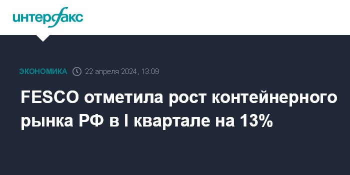 Москва. 22 апреля. INTERFAX.RU - Контейнерный рынок России за три месяца 2024 года увеличился на 13% по сравнению с аналогичным периодом прошлого года, до 1,608 млн TEU, сообщает транспортная группа FESCO.