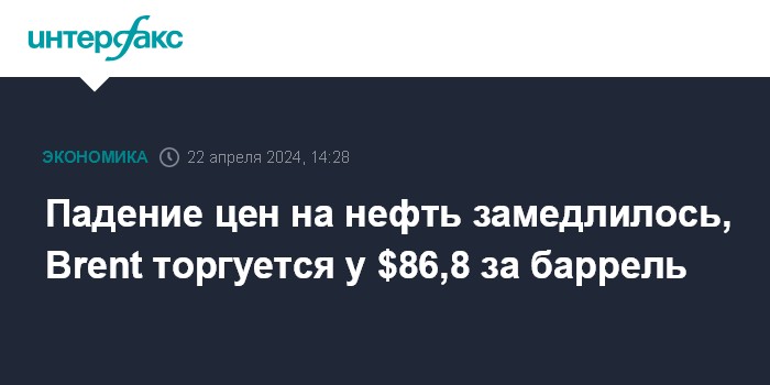 Падение цен на нефть замедлилось, Brent торгуется у $86,8 за баррель