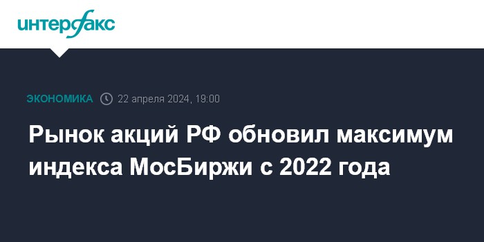 Рынок акций РФ обновил максимум индекса МосБиржи с 2022 года