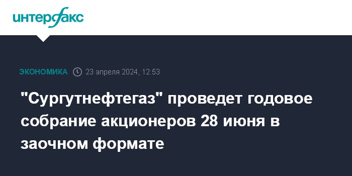 Москва. 23 апреля. INTERFAX.RU - Совет директоров "Сургутнефтегаза" назначил на 28 июня годовое собрание акционеров, оно пройдет в заочном формате, сообщила компания.