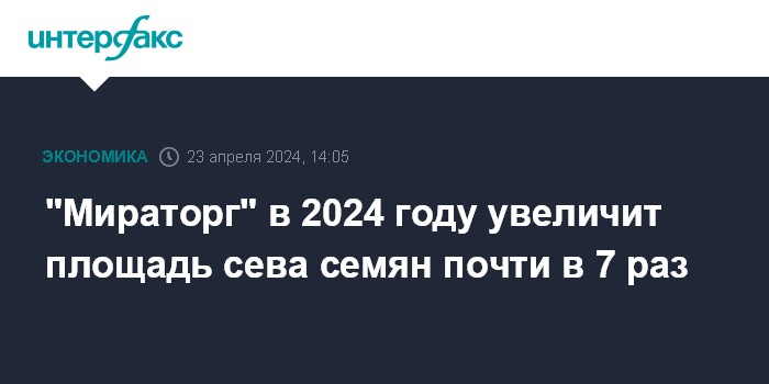 "Мираторг" в 2024 году увеличит площадь сева семян почти в 7 раз