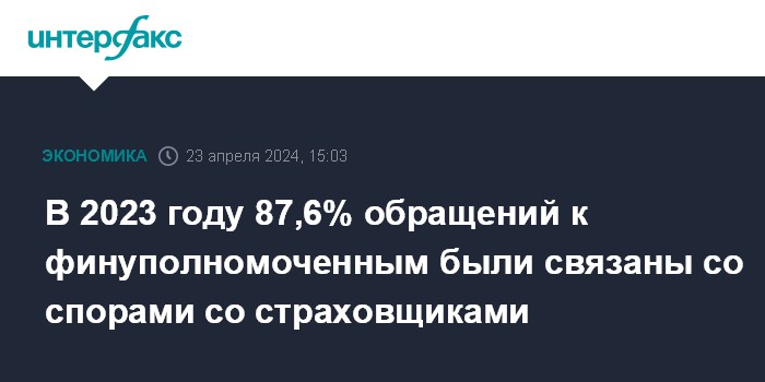 В 2023 году 87,6% обращений к финуполномоченным были связаны со спорами со страховщиками