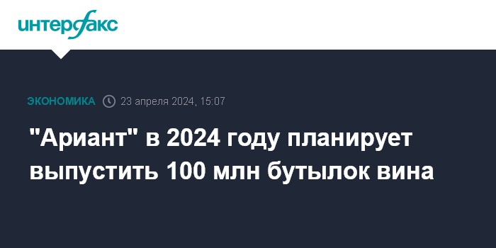 "Ариант" в 2024 году планирует выпустить 100 млн бутылок вина