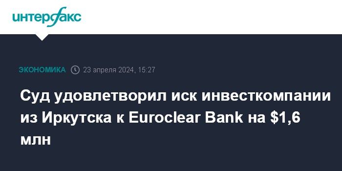 Суд удовлетворил иск инвесткомпании из Иркутска к Euroclear Bank на $1,6 млн