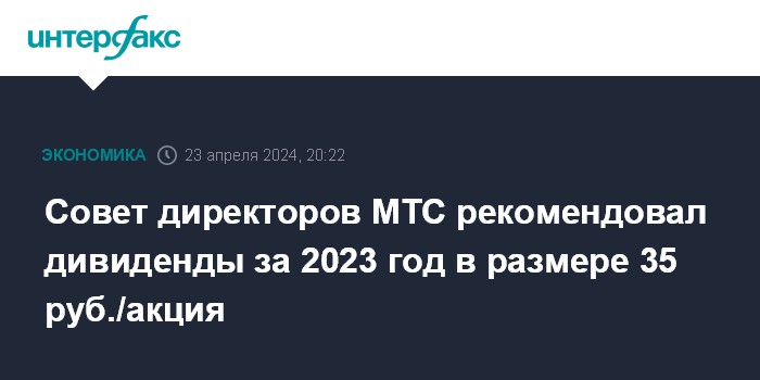 Совет директоров МТС рекомендовал дивиденды за 2023 год в размере 35 руб./акция