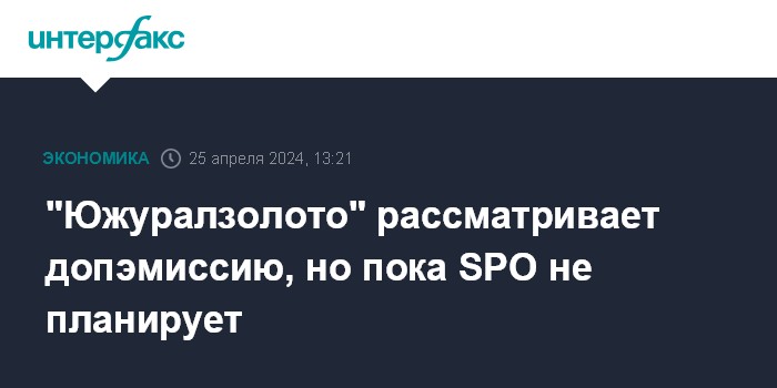 "Южуралзолото" рассматривает допэмиссию, но пока SPO не планирует