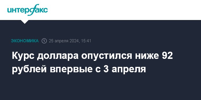 Курс доллара опустился ниже 92 рублей впервые с 3 апреля
