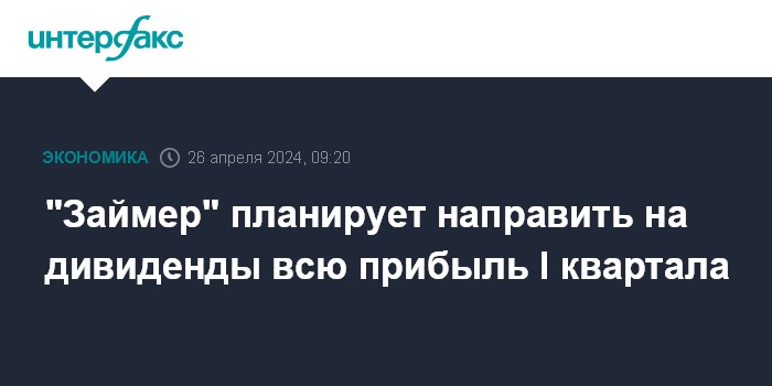 Как говорится в сообщении компании, всего на выплату дивидендов рекомендуется направить 458 млн руб., что составляет всю чистую прибыль "Займера" по МСФО за I квартал.