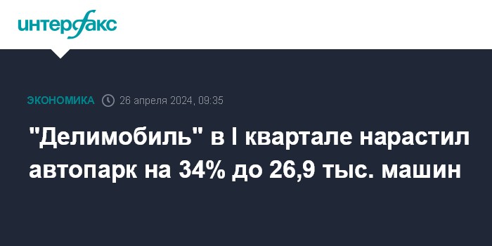 Москва. 26 апреля. INTERFAX.RU - ПАО "Каршеринг Руссия", предоставляющее услуги под брендом "Делимобиль", в I квартале 2024 года нарастило автопарк на 34% до 26,88 тыс. машин, сообщила компания.