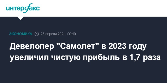 Девелопер "Самолет" в 2023 году увеличил чистую прибыль в 1,7 раза