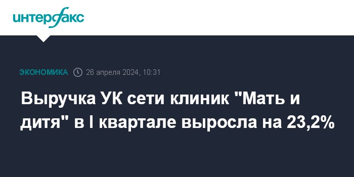 Выручка УК сети клиник "Мать и дитя" в I квартале выросла на 23,2%