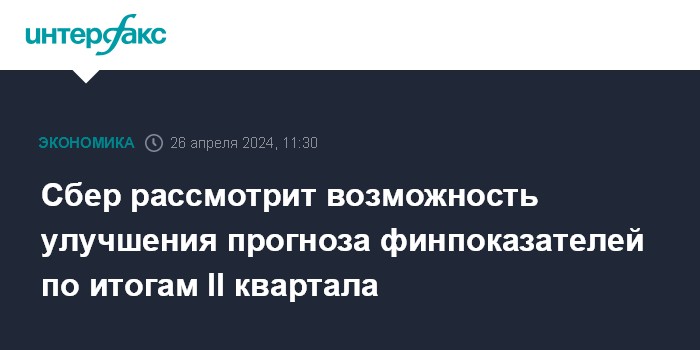 Сбер рассмотрит возможность улучшения прогноза финпоказателей по итогам II квартала
