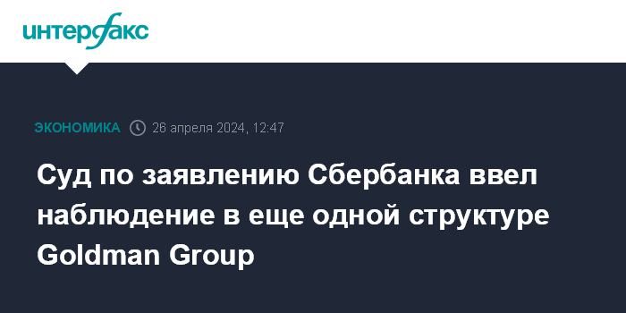 Суд по заявлению Сбербанка ввел наблюдение в еще одной структуре Goldman Group