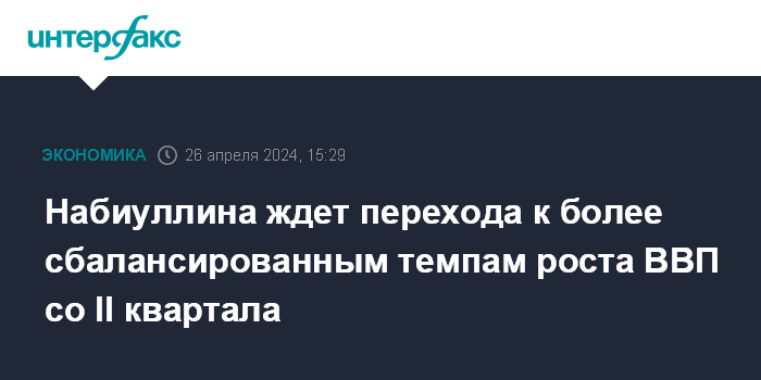 Набиуллина ждет перехода к более сбалансированным темпам роста ВВП со II квартала