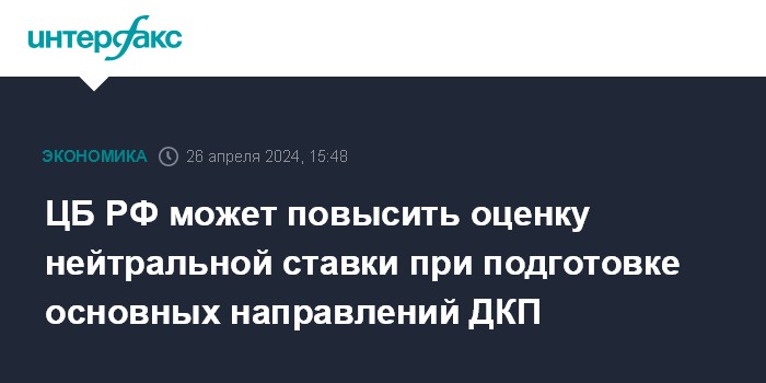 ЦБ РФ может повысить оценку нейтральной ставки при подготовке основных направлений ДКП