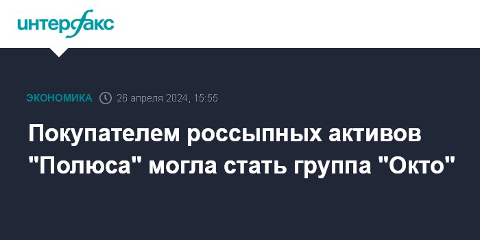 Москва. 26 апреля. INTERFAX.RU - Покупателем россыпных активов "Полюса" могла стать группа "Окто", которая занимается добычей угля, рассказали "Интерфаксу" два источника на рынке золота.
