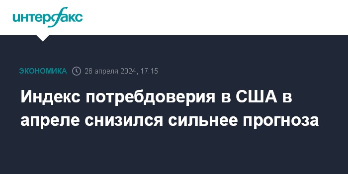 Индекс потребдоверия в США в апреле снизился сильнее прогноза