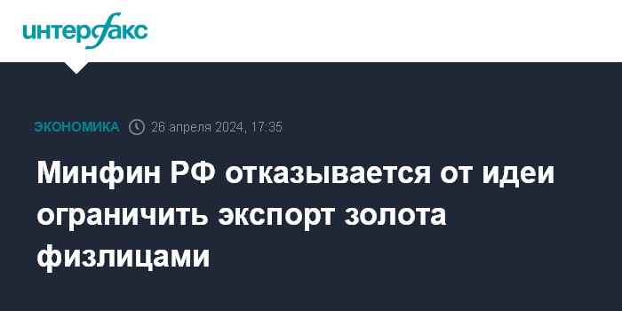 Минфин РФ отказывается от идеи ограничить экспорт золота физлицами