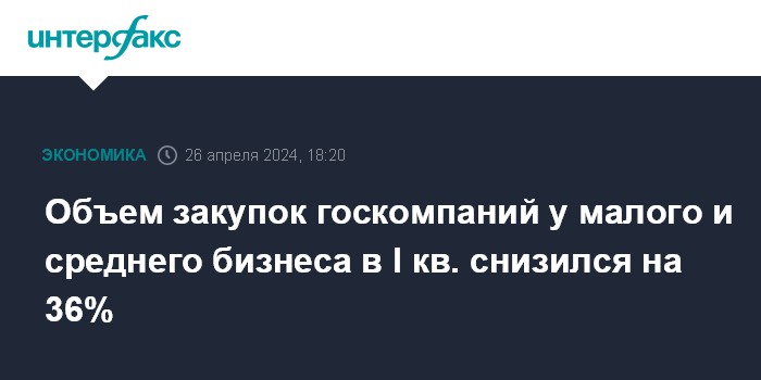 Объем закупок госкомпаний у малого и среднего бизнеса в I кв. снизился на 36%