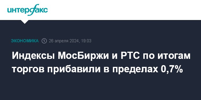 Индексы МосБиржи и РТС по итогам торгов прибавили в пределах 0,7%