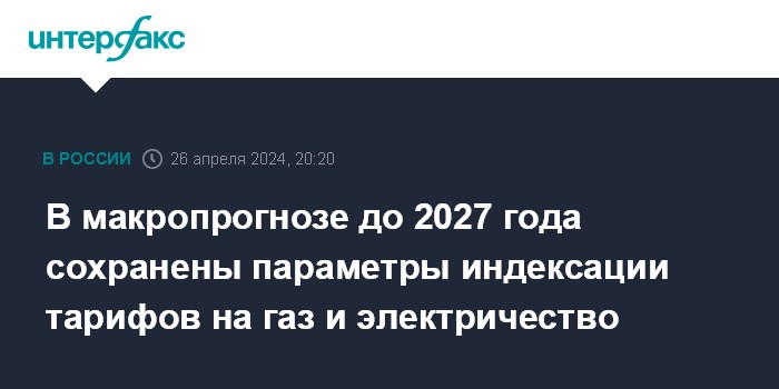 В макропрогнозе до 2027 года сохранены параметры индексации тарифов на газ и электричество