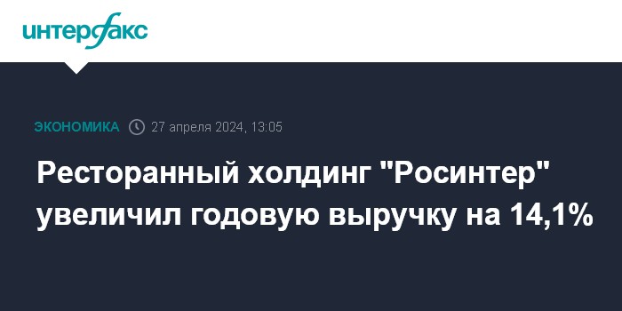 Ресторанный холдинг "Росинтер" увеличил годовую выручку на 14,1%