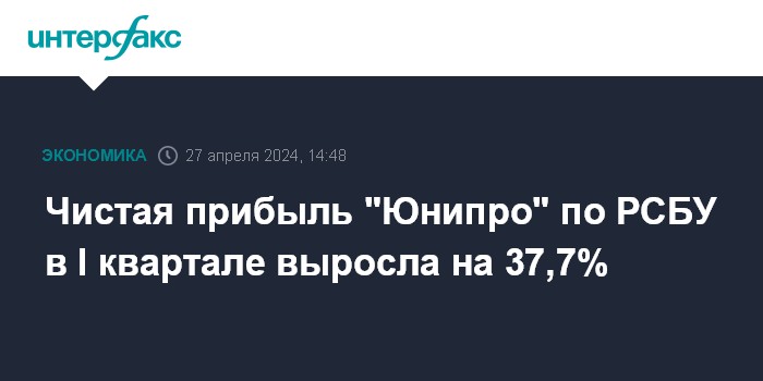 Москва. 27 апреля. INTERFAX.RU - Чистая прибыль ПАО "Юнипро" по РСБУ в I квартале 2024 г. выросла на 37,7% по сравнению с аналогичным периодом прошлого года, до 12,4 млрд руб., говорится в отчете компании.