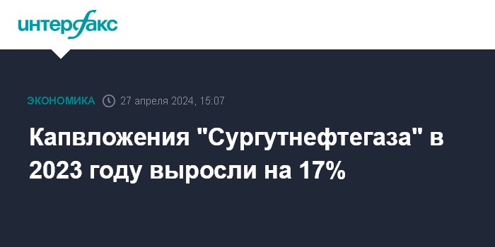 Москва. 27 апреля. INTERFAX.RU - Капитальные вложения "Сургутнефтегаза" в 2023 году выросли на 16,8% - до 264,987 млрд рублей, отмечается в отчете компании по МСФО.