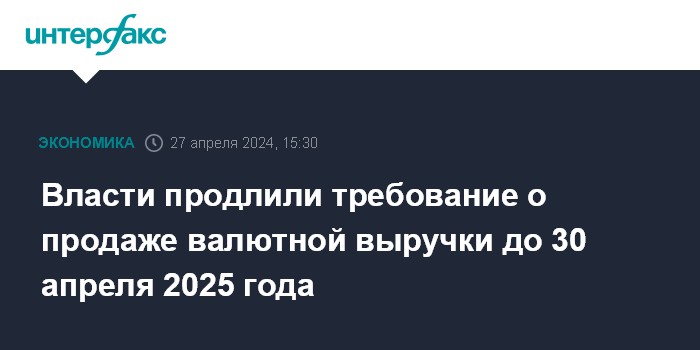 Власти продлили требование о продаже валютной выручки до 30 апреля 2025 года