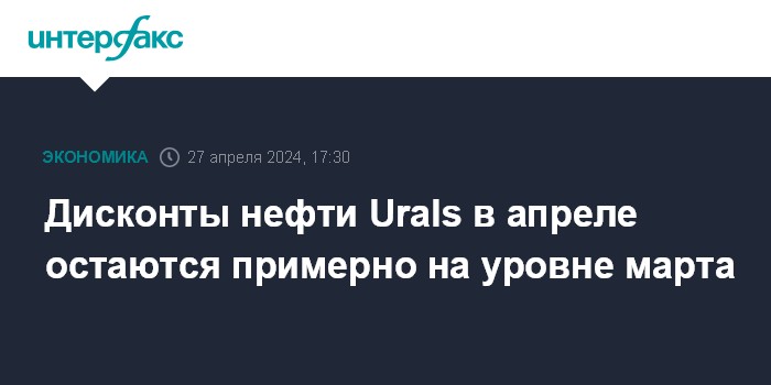 Дисконты нефти Urals в апреле остаются примерно на уровне марта