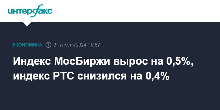 Индекс МосБиржи вырос на 0,5%, индекс РТС снизился на 0,4%