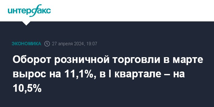 В январе-марте 2024 года оборот розничной торговли увеличился на 10,5%.