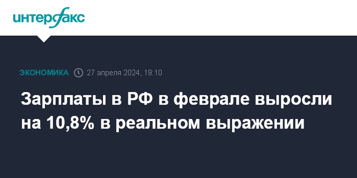 Зарплаты в РФ в феврале выросли на 10,8% в реальном выражении